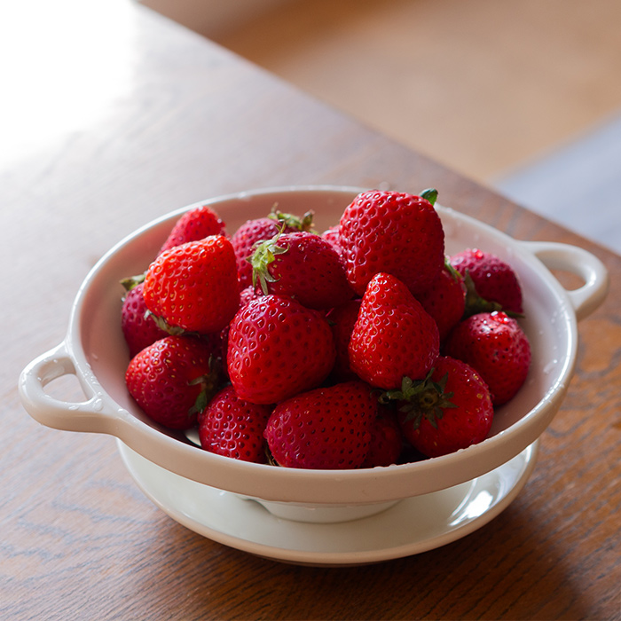もうすぐいちごの季節が終わってしまうと思うと少し寂しいですが、今年も思い残すことはない!というくらいたっぷり堪能しました。ここ数年、成東のいちごロードで産直の味を知ってからは、その美味しさの虜に。そんな私にとって、いちごを楽しむ時間に欠かせないのが「ベリーボウル」です。ザルよりも当たりが優しく、デリケートないちごを傷つけずに水切りができる優れもの。そのままテーブルに出せば、いちごの可愛らしさがさらに引き立ちます♡。イチゴ好きとしては欠かせない存在の器です。
