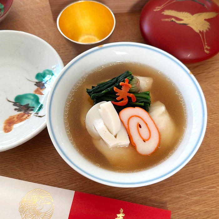 お雑煮に抜き型「寿」でひと手間