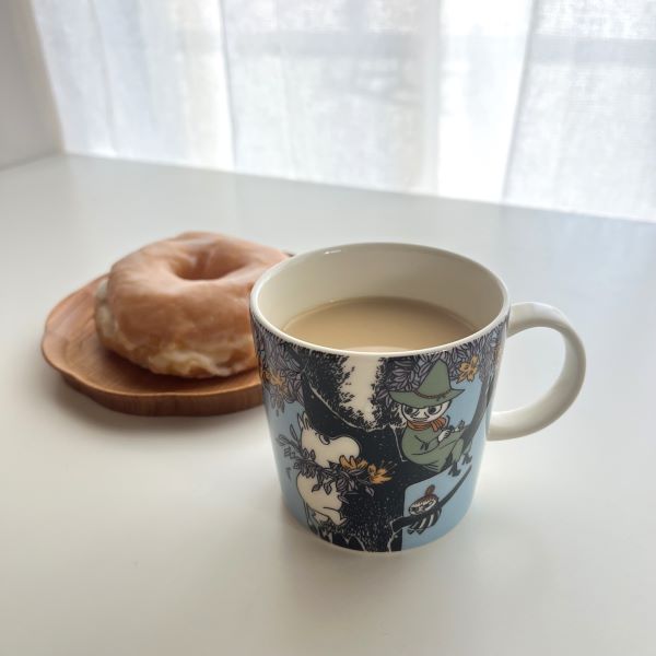 ムーミン80周年の記念マグ、やっぱり期待通りのかわいさでした♪最近は少し控えていたのですが、ムーミンマグコレクターとしてはこれは外せません。落ち着いたブルーがベースなので、ムーミンアイテムが初めての方にも取り入れやすく、贈り物にも選びやすい一客です。バックスタンプには「1945」と「2025」の文字。その年生まれの方へのプレゼントにしたら、きっと特別感も伝わるはず。記念イヤーならではの、手元に残しておきたいマグです。